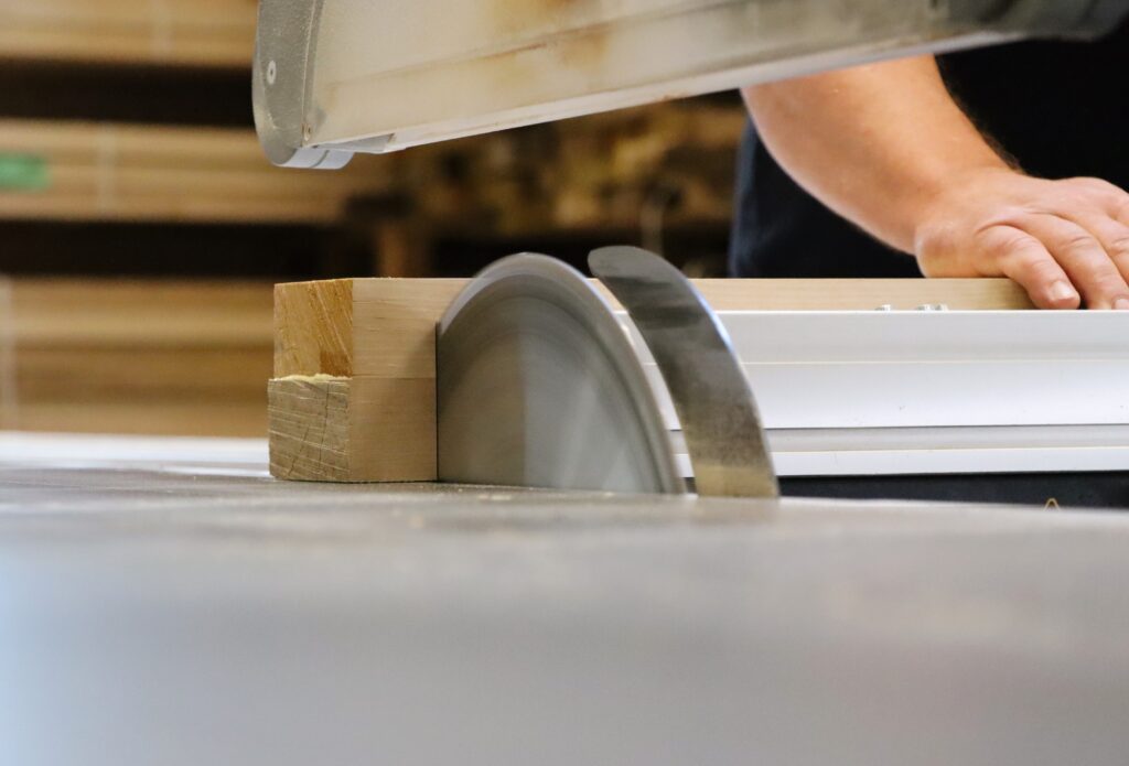 Cutting - A format saw and multi-blade cross-cut saw allow for preprocessing raw materials of various sizes.